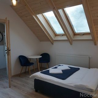maj 2022Świetne miejsce! Bardzo ładny pokój z wszystkim co mogłoby być potrzebne. Szafki, krzesła, stolik, wygodne łóżko, które przydaje się po długich godzinach marszu :) Czyściutka i spora łazienka, praktycznie jak nowa. Na parterze kuchnia z lodówkami, kuchenką i całym wyposażeniem dzięki czemu można ugotować dosłownie wszystko. Na piętrze naprawdę duży, ogólnodostępny salon z tarasem. W środku telewizor, kilka kanap i stoły więc można wypoczywać. W ogrodzie miejsca do rozpalenia ogniska z drewnem itp. Minuta drogi od sklepu. Obiekt nie stoi bezpośrednio przy drodze dzięki czemu jest po prostu ciszej.