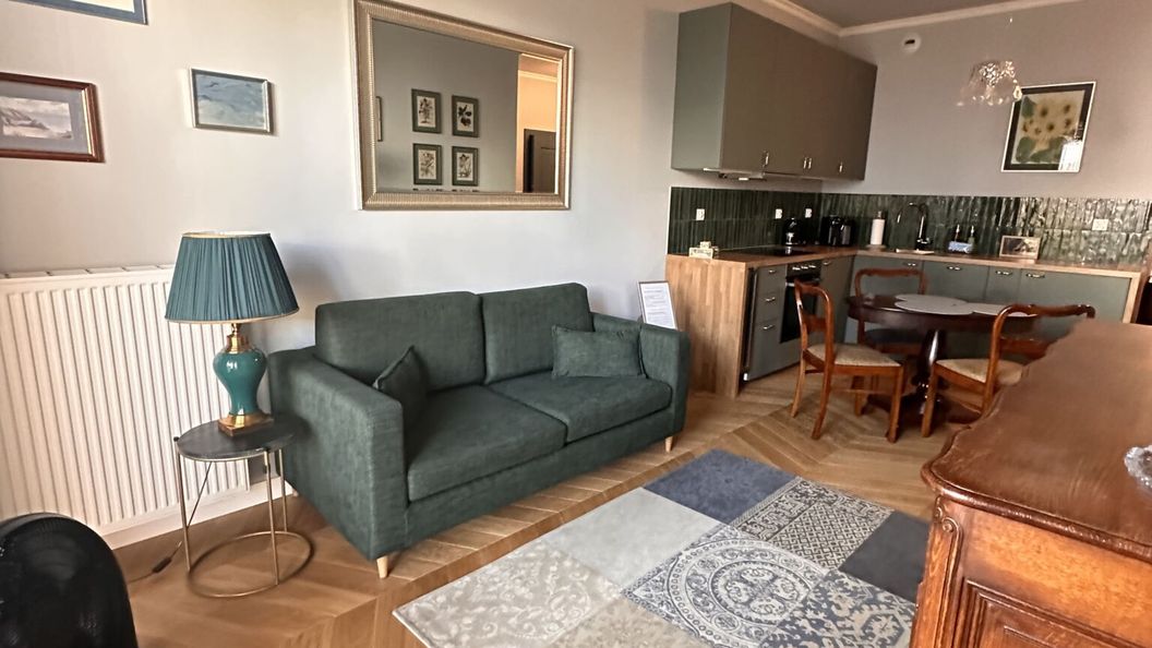 Nowoczesne mieszkanie w połączeniu z dodatkami z minionej epoki sprawia że jest bardzo przytulne. Mieszkanie o podwyższonym standardzie wyposażone jest we wszystkie niezbędne do komfortowego zamieszkania rzeczy jak ekspres do kawy, w pełni wyposażony aneks kuchenny, chłodziarka do wina na 7 butelek, łazienka z dwiema umywalkami i obszerną wolnostojącą wanną, sypialnia z dużym podwójnym łóżkiem z zasłonami zaciemniającymi, salon z roletami na wszystkich oknach wyposażony w rozkładaną sofę dla dwóch osób, oraz prywatny taras z kompletem mebli aby w cieple dni wypić kawę i zjeść śniadanie na świeżym powietrzu.