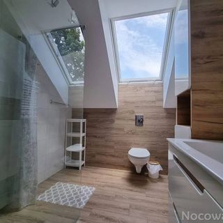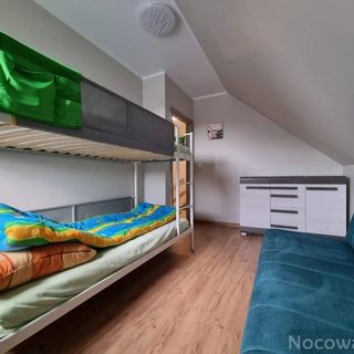 2. Piętro: 3 sypialnie (2 łóżka małżeńskie (możliwość rozłożenia jednego na dwa osobne jednoosobowe łóżka), a także wersalka 2 osobowa wraz z łóżkiem piętrowym idealnym dla najmłodszych), łazienka z kabiną prysznicową i WC.
