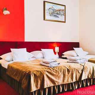 lipiec 2023Pokój trzyosobowy to klitka, a podobno, bo tak jest w ofercie miał mieć 28m. Wesele i głośna muzyka, gorąco, sen był niemożliwy.Trzy osoby w takim maleńkim pokoju, poprostu nie było czym oddychać, gdy otworzyliśmy okno głośna muzyka, ponieważ w obiekcie było wesele. Po długiej podróży z zachodu Polski liczyliśmy na odpoczynek, niestety noc w tym hotelu okazała się bardzo męcżąca. Jeśli chodzi o śniadanie, to jedyny plus.