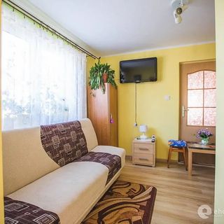 Zarezerwowałam pokój z łazienką oraz aneksem kuchennym. To co zastałam na miejscu to DRAMAT!!! Pokoje z kuchnią i łazienką to maleńkie pomieszczenia, które zostały przerobione z pomieszczeń gospodarczych na podwórku, mnie dostała się suteryna (schodzi się kilka stopni w dół), pokój sypialny dla czteroosobowej rodziny liczył ok. 7 m² wersalka, tapczan i koniec brak miejsca na rozstawienie łóżeczka turystycznego, ponadto jedno maleńkie okienko - czyli ciemna nora i niesamowity smród stęchlizny!!!! na zewnątrz pod okienkiem utworzony śmietnik ... worki z odpadkami. Brak miejsca do zabaw dla dzieci, huśtawka ogrodowa dla wszystkich wczasowiczów (czyli jednorazowo dla około 20 wczasowiczów). Chciałam zmienić suterynę na dom (o dziwo w szczycie sezonu były wolne pokoje) - pokoje w domu wyposażone tak jak na zdjęciu ale bez łazienek, na piętrze chyba 5 pokoi kilkuosobowych i jedna łazienka dla wszystkich, aneks kuchenny o wymiarach ok. 4 m² również dla wszystkich ... Jeśli zdecydujecie się na nocleg w tym miejscu to najpierw osobiście obejrzyjcie pokoje (przed obejrzeniem nie płaćcie z góry) i spiszcie umowę co do wynajmu, który konkretnie pokój. Do ceny dodatkowo doliczana jest opłata klimatyczna w wysokości 2,50 zł od osoby za dobę. Do zalewu 10 min drogi. Zdjęcia nie odzwierciedlają wielkości pokoi!!!
