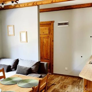 Apartament 8-osobowy znajduje się na parterze, który posiada oddzielne wejście przez taras. Znajdują się tam 3 sypialnie z 2 łazienkami, salon z rozkładanym narożnikiem, weranda i taras z meblami do wypoczynku i grillem. W pełni wyposażona kuchnia pozwoli na przygotowanie i podanie posiłków. W apartamencie jest żelazko, pralka, suszarka, bezpłatne wi-fi, ogrzewanie podłogowe. Na ogrodzonej posesji znajduje sie parking, miejsce na ognisko.