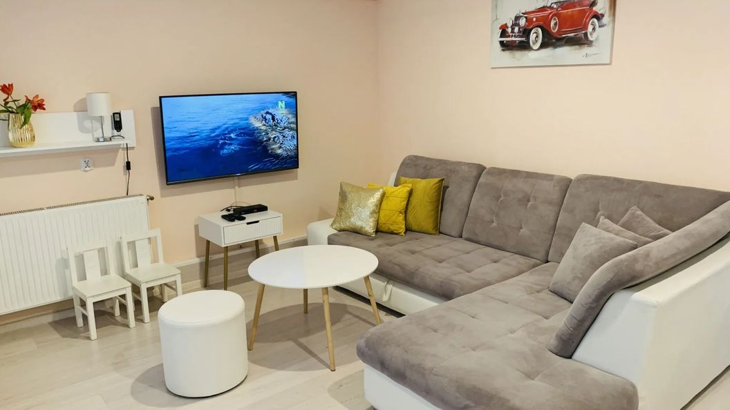 Apartament Komfort z klimatyzacją oraz Wi-Fi. Znakomita lokalizacja, tylko minuta do rynku. Atutem jest bezpłatny parking. Apartament wyposażony jest w aneks kuchenny, łazienkę, sypialnię z 2-osobowym łóżkiem oraz salon z dużym, rozkładanym narożnikiem z funkcją spania. W bliskiej odległości od apartamentu znajduje się sieć sklepów. Serdecznie zapraszamy!