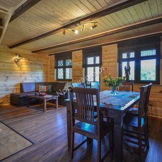 * pachnące drewnem wnętrze, wykończone naturalnym kamieniem;