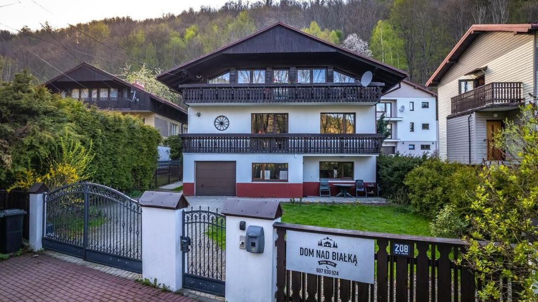 Funkcjonalny, położony w bardzo relaksującej lokalizacji dom z dala od miejskiego zgiełku, u podnóża gór, nad rzeką, acz blisko cywilizacji (niedaleko sklep, restauracja, miasto). 100m od domu znajduje się 4**** hotel, w którym dostępne są basen, sauny, korty tenisowe, czy siłownia, gdzie można skorzystać z restauracji i wykupić śniadania w formie bufetu. Oferujemy zniżkę na wypożyczenie sprzętu narciarskiego w Szczyrku. W domu dostępne jest pomieszczenie z suszarkami do butów oraz stojakiem na narty/deski. Zapewniamy jedno miejsce garażowe oraz przestrzeń przed domem, aby wygodnie i bezpiecznie zaparkować. W garażu dostępny jest rozkładany stół do tenisa stołowego, a dla chętnych również rowerek treningowy z widokiem na góry. Chcemy podzielić się z naszymi Gośćmi odrobiną lokalnej kultury dlatego zapewniamy lokalną wodę mineralną Bystrzanka. Na najwyższym piętrze domu, w niezależnym i oddzielonym od reszty domu mieszkaniu, mieszkają Gospodarze obiektu, którzy na co dzień dbają o ogród i w razie potrzeby służą pomocą, żeby naszym Gościom niczego nie brakowało. Szukajcie nas na FB, IG, na YT jest film pokazujący nasz Dom nad Białką Kilka ważnych zasad: - PROSIMY NIE PARKOWAĆ NA TRAWNIKU PRZED DOMEM. Parkowanie na trawniku jest zabronione z uwagi na grząskość gruntu i tworzące się w ten sposób zagłębienia. - Cisza nocna obowiązuje od godz. 22 do godz. 6 rano. - Na terenie Domu obowiązuje całkowity zakaz palenia papierosów. Papierosy wolno palić na podwórzu przed wejściem - Goście z chwilą otrzymania kluczy do Domu odpowiadają za mienie. W przypadku zniszczeń bądź braków będą obciążeni kosztami napraw, bądź kosztami brakujących rzeczy. - Za wartościowe rzeczy pozostawione w Domu nie odpowiada Gospodarz. - Gospodarz nie ponosi odpowiedzialności za jakiekolwiek szkody Gości powstałe w trakcie przebywania Gości w Domu. - Za złamanie zasad Domu przez któregokolwiek z Gości, Gospodarz nabędzie prawo do obciążenia Gościa karą umowną w wysokości 500 zł za każde naruszenie.