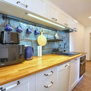 W apartamentach mamy dobrze wyposażoną kuchnię. Wśród dostępnych sprzętów znajduje się dwustanowiskowa płyta indykcyjna, piekarnik elektryczny, ekspres do kawy, lodówka, kuchenka mikrofalowa, toster, zmywarka, pralka oraz podstawowe naczynia kuchenne.