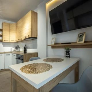 W apartamencie zapewniono 1 sypialnię, kuchnię z lodówką i zmywarką, a także 1 łazienkę z prysznicem, suszarką do włosów oraz pralką. W apartamencie zapewniono ręczniki i pościel.