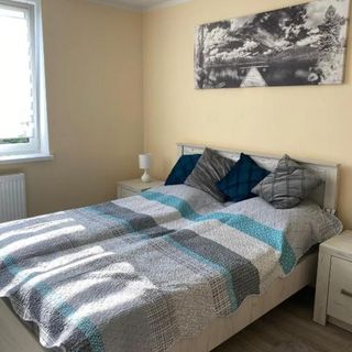 W apartamencie do dyspozycji gości przygotowano sypialnię (1), jadalnię, kuchnię z lodówką oraz salon. Wyposażenie obejmuje też telewizor z płaskim ekranem z dostępem do kanałów satelitarnych.