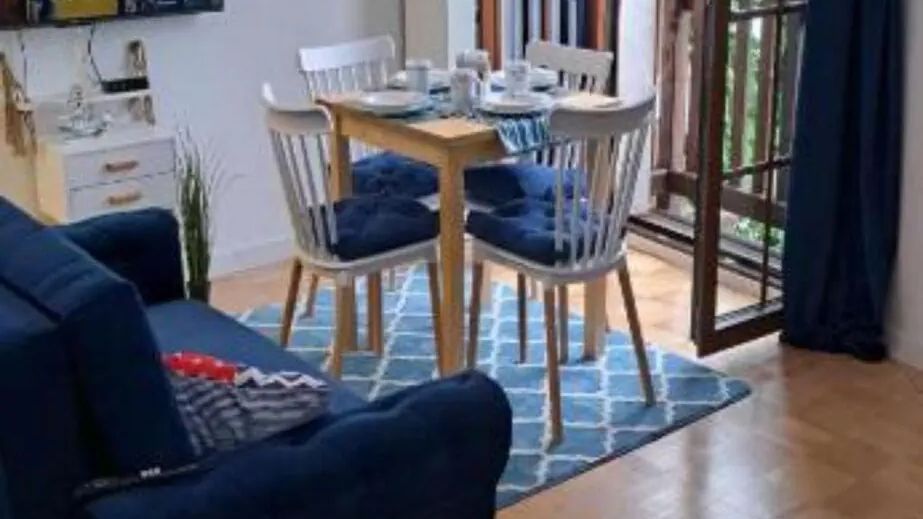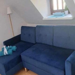 Do dyspozycji gości jest komfortowy, 4-osobowy apartament typu Lux, zlokalizowany na piętrze budynku. Wnętrze obejmuje salon z łóżkiem dla 2 osób i rozkładaną sofą oraz w pełni wyposażoną kuchnię, która zawiera płytę grzejną, kuchenkę mikrofalową, lodówkę i akcesoria kuchenne. Kluczowym atutem apartamentu jest balkon z widokiem na jezioro, stanowiący doskonałe miejsce do wypoczynku.
