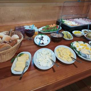 Śniadania w postaci szwedzkiego stołu.
