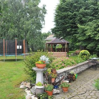 Do dyspozycji wszystkich gości przeznaczono ogólnodostępny aneks kuchenny, wyposażony w kuchenkę gazową, lodówkę, kuchenkę mikrofalową oraz niezbędne przybory. Na terenie ogrodzonej posesji znajduje się prywatny parking, a w ogrodzie przygotowano altanę do wypoczynku.