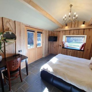 Niektóre pokoje w domku drewnianym posiadają balkon lub taras, gdzie możesz się cieszyć miłym wieczorem na świeżym powietrzu.