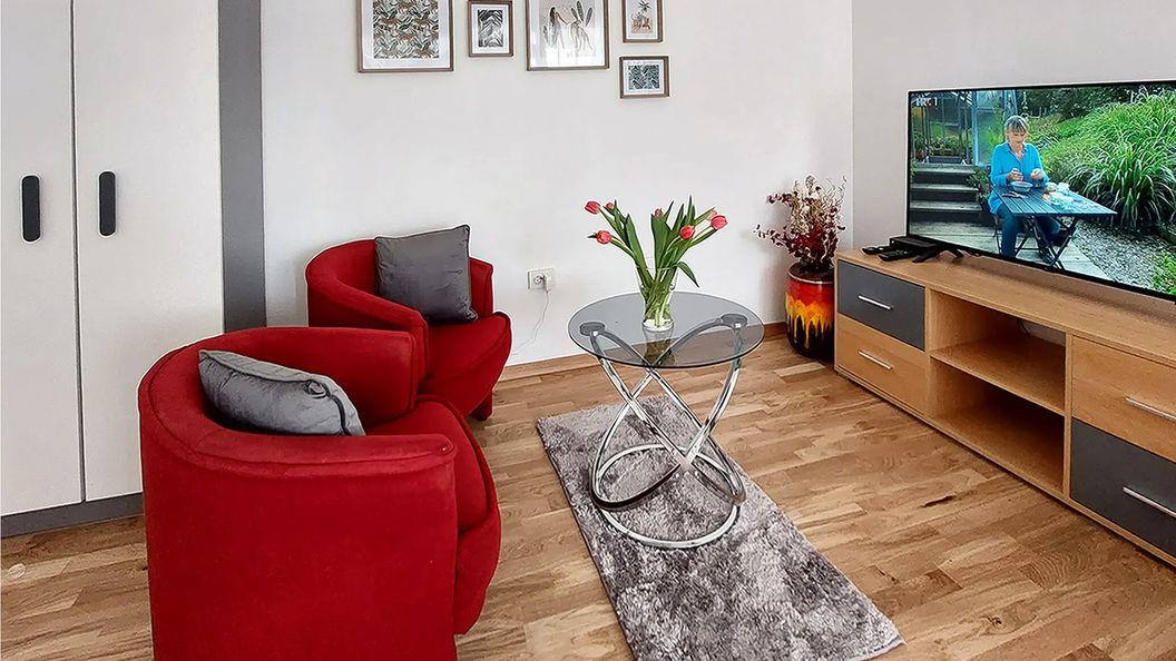 Blok w którym znajduje się apartament nie wyróżnia się specjalnie urodą ale.... apartament jest duży, nowocześnie i fantastycznie wyposażony (m.in. zmywarka, pralka, ekspres do kawy na kapsułki, klimatyzacja, balkon, deska do prasowania, suszarka, doskonale wyposażona kuchnia... po prostu mieszkanie w fajnym standardzie). W lodówce mały upominek powitalny. Czysto i po prostu wspaniale. Lokalizacja dobra - wszędzie blisko. Nie było problemu z parkowaniem auta choć parking nie był prywatny a publiczny (bezpłatny). Sympatyczni gospodarze. Fantastyczny, nowoczesny apartament. Doskonała baza wypadowa do zwiedzenia okolicznych atrakcji Blok w którym znajduje się apartament nie wyróżnia się specjalnie urodą ale.... apartament jest duży, nowocześnie i fantastycznie wyposażony (m.in. zmywarka, pralka, ekspres do kawy na kapsułki, klimatyzacja, balkon, deska do prasowania, suszarka, doskonale wyposażona kuchnia... po prostu mieszkanie w fajnym standardzie). W lodówce mały upominek powitalny. Czysto i po prostu wspaniale. Lokalizacja dobra - wszędzie blisko. Nie było problemu z parkowaniem auta choć parking nie był prywatny a publiczny (bezpłatny). Sympatyczni gospodarze.