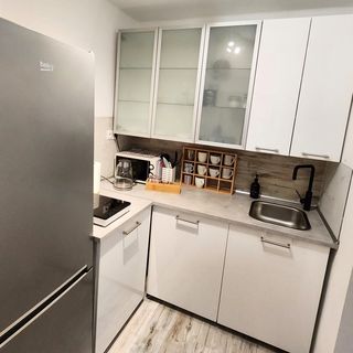 Mieszkanie po niedawnym generalnym remoncie. Dwa niezależne pokoje. W sypialni duże podwójne łóżko szer. 160cm. Duża pojemna szafa. W salonie rozkładana kanapa, na której spokojnie można spać oraz miejsce do spożycia posiłku. Kuchnia wyposażona w dużą lodówkę, mikrofalówkę, czajnik elektryczny oraz płytę indukcyjną. Łazienka- prysznic, umywalka, toaleta, pralka Do dyspozycji gości deska do prasowania, żelazko. Wifi