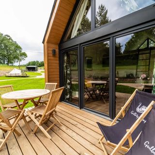 Oferujemy Państwu pobyt w 4 całorocznych domkach wykończonych w wysokim standardzie oraz 3 komfortowo wyposażonych namiotach, każdy z prywatną łazienką oraz wspólnym zapleczem kuchennym.