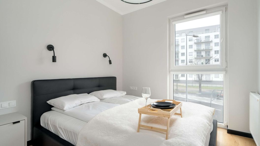 Ten nowoczesny apartament o powierzchni 38 m² ma możliwość zakwaterowania 4 osób. Będzie idealnym miejscem na rodzinny wyjazd do Poznania. Mieszkanie składa się z salonu, kuchni, sypialni, balkonu oraz łazienki z prysznicem. Część dzienna posiada wyjście na balkon, gdzie można delektować się ulubioną, poranną kawą. Goście mogą skorzystać z szybkiego Wi-Fi i telewizora z płaskim ekranem oraz funkcją SmartTV. Sypialnia wyposażona jest w biurko z wygodnym krzesłem, które zapewnia miejsce do pracy zdalnej lub nauki. Mieszkanie wyposażone jest także w inne udogodnienia, takie jak żelazko, deska do prasowania, odkurzacz czy suszarka do włosów. Na dobry początek każdego pobytu zapewniono bezpłatny zestaw kosmetyków, ręczniki i pościel. Wnętrza tego wyjątkowego miejsca wyróżniają się jasnym, eleganckim i nowoczesnym wystrojem, estetyką oraz funkcjonalnością.