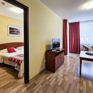 W samym budynku znajduje się basen i sauna, do którch dostęp możliwy jest za opłatą i po uzgodnieniu terminu z obsługą.