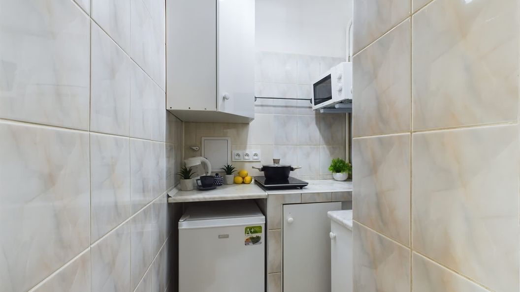 Płyta indukcyjna, kuchenka mikrofalowa, lodówka, zamrażarka, czajnik elektryczny, zastawa stołowa