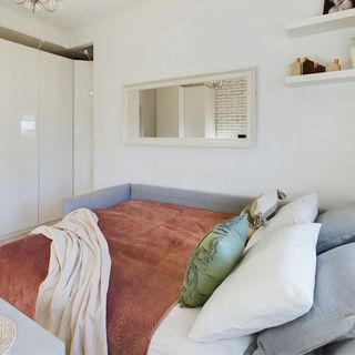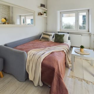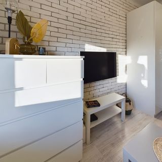 Rozkładana sofa, TV, stolik kawowy, komoda, szafa