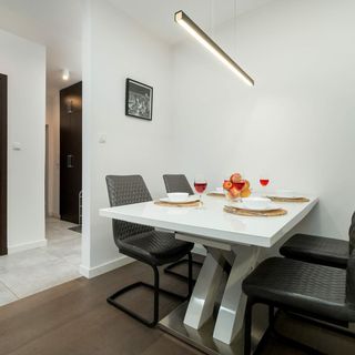 Apartament znajduje się w spokojnej okolicy Łodzi przy ulicy Gnieźnieńskiej. Okolica łączy w sobie spokój i ciszę z jednoczesnym dostępem do wszystkich atrakcji miasta. Jest to doskonała propozycja na rodzinny pobyt w Łodzi lub dla osób podróżujących służbowo. Dzięki rozwiniętej komunikacji miejskiej i bliskiej odległości do przystanków autobusowych (270 m) i tramwajowych (500 m) można w wygodny sposób podróżować po mieście. Do jednego z najważniejszych punktów na mapie Łodzi — Manufaktury mieszczącej się w zrewitalizowanym zabytku architektury przemysłowej spacerem można dojść w około 14 minut. Jest to niewątpliwie ciesząca się popularnością atrakcja turystyczna, główne miejsce spotkań oraz centrum kultury (Teatr Mały, Muzeum Fabryki). Wielbiciele międzynarodowej kuchni oraz smacznej kawy znajdą tu wiele świetnych restauracji i kawiarni. Kolejnym ważnym miejscem jest ulica Piotrkowska (1,9 km) — najdłuższa ulica handlowa w Europie, przy której można podziwiać zabytkowe kamienice. Chwilę wytchnienia wśród zieleni można znaleźć na Miejskim Skwerze na Lutomierskiej (350 m), gdzie na najmłodszych czeka atrakcja w postaci placu zabaw. Wyjątkowa lokalizacja apartamentu dostarcza Gościom liczne atrakcje, a także zaspokaja wszystkie codzienne potrzeby. Rozwinięta infrastruktura handlowo-usługowa to jedna z zalet najbliższej okolicy. Miłośnicy włoskiej kuchni zaledwie 350 m od apartamentu mogą skorzystać z oferty jednej z okolicznych pizzerii. Zakupy spożywcze można zrobić w oddalonym o 750 m Lidlu. Na dworzec kolejowy Łódź Żabieniec samochodem lub taksówką dojedziemy w 7 minut, a na lotnisko droga zajmuje około 28 minut.