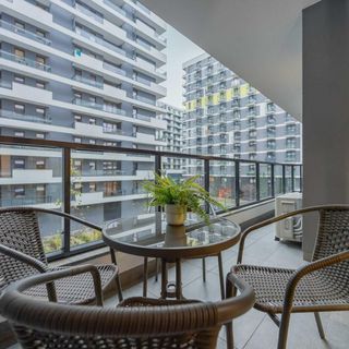 Ta nowoczesna i elegancka, dwunastopiętrowa nieruchomość znajduje się w bardzo atrakcyjnej lokalizacji, dzięki czemu jest to doskonały wybór zarówno na krótkie, jak i długoterminowe pobyty. Do dyspozycji odwiedzających są zlokalizowane przy budynku stojaki na rowery, a zmotoryzowani goście mogą korzystać z miejsca postojowego usytuowanego w podziemnej hali garażowej. Najbliższy sklep spożywczy mieści się w tym samym obiekcie, co zapewnia komfort codziennych zakupów. Tuż obok budynku znajduje się natomiast restauracja, w której można miło spędzić czas przy pysznych daniach. Miłośnicy zieleni i relaksu na powietrzu mogą w niecały kwadrans dojść do parku z malowniczym stawem, urokliwymi fontannami, przestrzeniami do zabawy dla dzieci, biblioteką plenerową, dwiema kawiarniami oraz miejscami służącymi rekreacji, które umożliwiają aktywny wypoczynek. Dojazd do centrum handlowego, na kręgielnię, do parku wodnego, na stację metra i na kort tenisowy zajmuje 6-9 minut, podczas gdy trasa na lotnisko trwa 23 minuty, a na rynek z piękną architekturą i imponującymi zabytkami tylko 17 minut. Zaledwie 5 minut wystarczy, aby dojść na siłownię plenerową. W około 12 minut można natomiast dotrzeć pieszo na stację kolejową Warszawa Wola. Wielbiciele gorących napojów mogą odwiedzić pobliskie kawiarnie takie jak oddalone o 2-5 minut spaceru District Speciality Coffee czy The White Bear Coffee. Na dojazd do centrum handlowego Złote Tarasy oraz Pałacu Kultury i Nauki potrzeba około kwadransa.