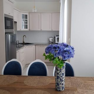 - w pełni wyposażona kuchnia (m.in. ekspres ciśnieniowy na kawę ziarnistą, zmywarka, płyta indukcyjna z czterema polami grzewczymi, kuchenka mikrofalowa z funkcją grilla, lodówka, czajnik elektryczny, zestaw garnków, patelni, zastawa stołowa, sztućce, szklanki, kubki, filiżanki, kieliszki itp.)