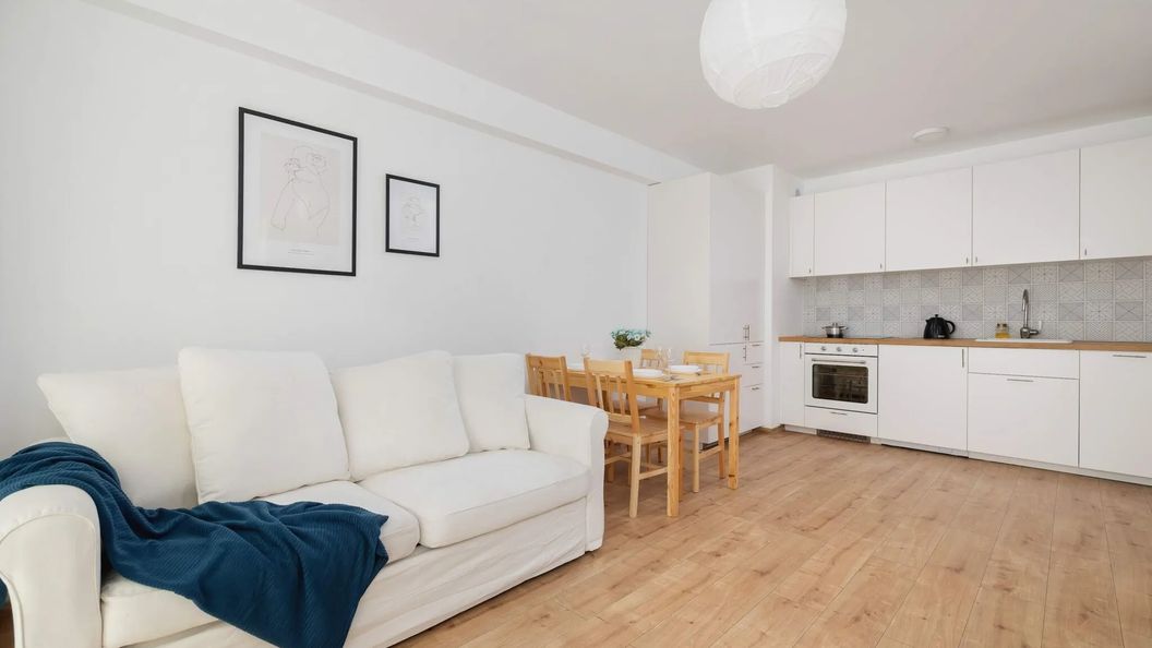 W pełni wyposażony apartament o powierzchni 51 m² może wygodnie ugościć 4 osoby - jest to idealny wybór na rodzinny wyjazd lub dla grupki przyjaciół. Wysoce funkcjonalna przestrzeń składa się z salonu z aneksem kuchennym, dwóch sypialni oraz łazienki z prysznicem. Do dyspozycji gości jest także balkon z meblami ogrodowymi, gdzie można napić się porannej kawy. Część dzienna wyposażona w wygodną, rozkładaną sofę oraz telewizor Smart TV stanowi doskonałe miejsce odpoczynku i relaksu. Pokój posiada również stół z czterema krzesłami, co uczyni każdy posiłek miłym czasem spędzonym z rodziną, czy przyjaciółmi. W obu sypialniach znajdują się komfortowe pojedyncze łóżka. Jeden z pokoi oferuje także biurko z krzesłem, dzięki czemu goście pracujący zdalnie będą mogli w komfortowy sposób zadbać o obowiązki służbowe. Apartament posiada dostęp do szybkiego bezpłatnego Internetu Wifi. Szeroki wachlarz udogodnień oraz kompleksowe wyposażenie apartamentu w niezbędne akcesoria i sprzęty kuchenne, jak i łazienkowe gwarantuje komfort pobytu. Dla ułatwienia rozpoczęcia każdej wizyty zapewniono bezpłatny zestaw kosmetyków (mydło, szampon i żel pod prysznic), ręczniki oraz pościel. Na wyposażeniu mieszkania goście znajdą również pralkę, co z pewnością docenią rodziny z małymi dziećmi czy osoby planujące dłuższy pobyt. Apartament wyróżnia się starannym wykończeniem oraz nowoczesnym designem. Wnętrze jest jasne, przestronne i funkcjonalnie zaprojektowane, wychodząc naprzeciw wszelkim potrzebom gości.