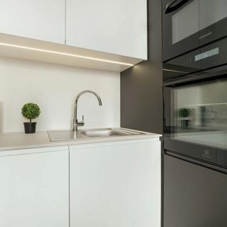 Zestaw sztućców i naczyń, kubki, szklanki, garnki, patelnia, kieliszki do wina, zmywarka, lodówka, zamrażarka, ekspres do kawy, kuchenka mikrofalowa, piekarnik, płyta indukcyjna, czajnik elektryczny, pochłaniacz pary