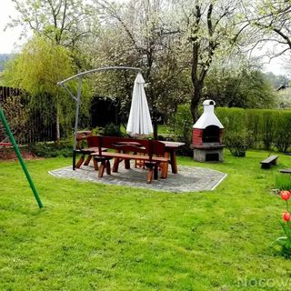 Na terenie domu znajduje się duży urokliwy ogród z atrakcjami dla najmłodszych : piaskownica, huśtawki, zjeżdżalnia, sama powierzchnia ogrodu jest już atrakcją gdyż jest mnóstwo miejsca na zabawę m.in. w berka, chowanego a jak ktoś lubi zieleń i kwiatki to jest ich tutaj pod dostatkiem. Jeśli chodzi o rodziców to znajduje się tutaj grill, palenisko na którym można zrobić sobie ognisko ( drewno jest na miejscu ), a także mamy zestaw mebli ogrodowych więc jak już upieczemy sobie jedzonko to mamy je gdzie zjeść w ciszy i spokoju. Jeśli mowa o spokoju dla rodziców to ogród sprawia to, że dzieciaki mają gdzie się wyszaleć, a rodzice w tym czasie mogą odpocząć , a o to przecież na wakacjach chodzi u Nas trochę inaczej to wyglądało gdyż mamy 1-roczną Anię więc chcąc nie chcąc nie odstępowanie jej na krok plus oczy dookoła głowy trzeba było mieć. Bardzo spodobało mi się, że właściciele myślą o rodzinach z dziećmi i ich bezpieczeństwie. Na górze zamontowana jest bramka przed schodami. Na końcu koniecznie muszę wspomnieć o właścicielach domków, którzy są bardzo miłymi i pomocnymi ludźmi. Z tego miejsca serdecznie pozdrawiam - mam nadzieje, że przeczytają moją opinię:) pozdarwiamy Monika i Michał z dziećmi:)