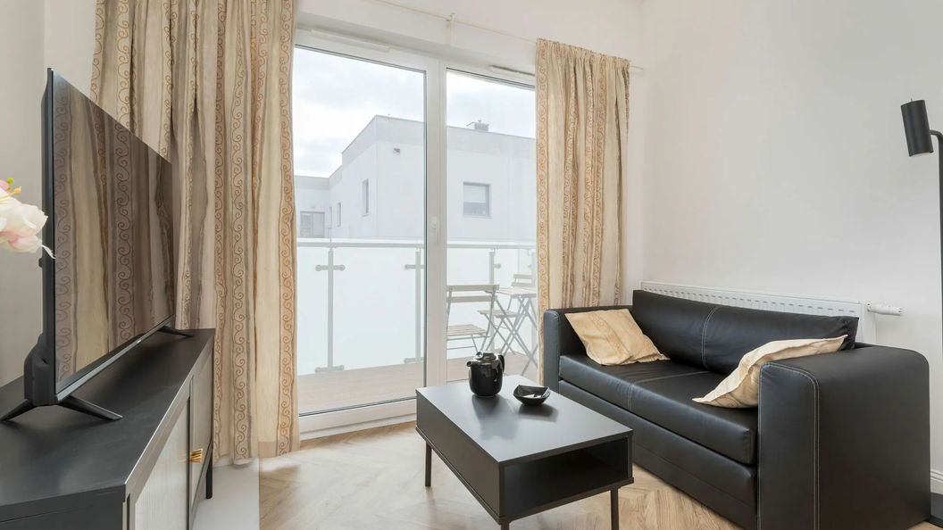 Ten przestronny apartament z możliwością zakwaterowania 4 osób składa się z salonu z aneksem kuchennym, sypialni i łazienki z prysznicem oraz balkonu. Przestrzeń mieszkania jest nowoczesna, jasna i dzięki stylowemu wyposażeniu wyjątkową atmosferę. Wygodę pobytu zapewni wiele udogodnień, takich jak bezpłatne łącze WiFi, telewizor SmartTV oraz w pełni wyposażony aneks kuchenny z ekspresem do kawy. W salonie znajduje się wygodna rozkładana sofa oraz stół z krzesłami. Świeżą kawę można wypić na balkonie wyposażonym w meble ogrodowe. Goście mogą również skorzystać z prywatnego miejsca parkingowego w garażu podziemnym. Ten apartament będzie znakomitym miejscem noclegowym na rodzinny wyjazd od Gdańska.