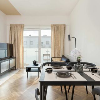 Ten komfortowy apartament znajduje się w Gdańsku w świetnej lokalizacji przy ulicy Kartuskiej. Nowy budynek, winda, balkon, prywatne miejsce parkingowe - to tylko niektóre atuty tej nieruchomości. Apartament znajduje się w dzielnicy Jasień, która łączy w sobie dobrze rozwiniętą infrastrukturę handlową i gastronomiczną z pięknym, zielonym otoczeniem. Lokalizacja ta jest idealna dla osób szukających relaksu i spokojnego miejsca na swój pobyt. W dzielnicy znajduje się wiele jezior, działek ogrodowych i parków. Goście mogą również odwiedzić zabytki historyczne, takie jak Park Dworski 1 km od apartamentu. Okolica spełnia wszystkie codzienne potrzeby dzięki wielu sklepom i restauracjom znajdującym się w pobliżu, jak pizzeria po drugiej stronie ulicy czy sklep spożywczy w tym samym budynku. Jest to również doskonała baza wypadowa do zwiedzania pozostałej części Trójmiasta - korzystając z komunikacji miejskiej, można dotrzeć do Starówki w 30 minut.