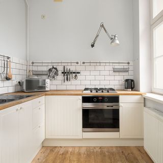 Piekarnik, kuchenka gazowa, lodówka z zamrażarką, czajnik elektryczny, kuchenka mikrofalowa, zastawa stołowa i kuchenna, kieliszki do wina.