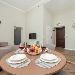 Budynek jest położony w okolicy pełnej zieleni i wspaniałych widoków – w kilka minut można dojść do zlokalizowanego nieopodal ogrodu, a dwa pobliskie parki są usytuowane mniej więcej 10 minut spaceru od nieruchomości. Dojazd samochodem do klimatycznego rynku trwa tylko kwadrans – pozwala to szybko dotrzeć do miejsca, w którym można podziwiać wspaniałą architekturę i nabyć pamiątki. Niedaleko obiektu znajdują się liczne kawiarnie i restauracje – dzięki temu jest to doskonałe miejsce dla miłośników wyśmienitych dań i przekąsek. Nie brakuje tutaj również sklepów, co sprawia, że można w łatwy sposób zaopatrzyć się w niezbędne produkty. Punkt ten jest doskonale skomunikowany z pozostałymi częściami miasta – od najbliższych przystanków transportu publicznego odwiedzających dzieli jedynie kilkuminutowa przechadzka.