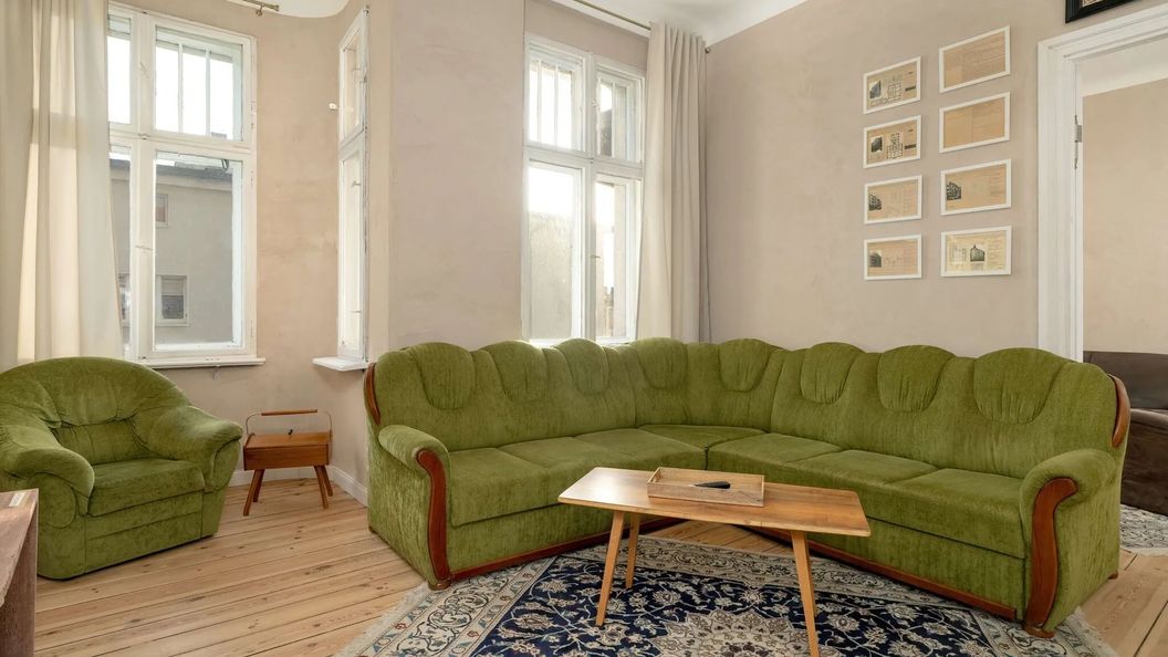 Ten apartament to harmonijne połączenie klasycznej elegancji z nowoczesnym komfortem, oferujące przestrzeń idealną do relaksu. Przeznaczony dla 9 osób, składa się z dwóch sypialni, kuchni, dwóch oddzielnych salonów pełniących funkcję sypialni oraz dwóch łazienek z prysznicami. Dodatkowym atutem są dwa balkony, które zapraszają do porannej kawy lub wieczornego odpoczynku na świeżym powietrzu. Oba przestronne salony, wyposażone w rozkładane sofy, zapewniają komfortowy wypoczynek. W jednym z nich znajduje się duży, rodzinny stół, doskonały do wspólnego celebrowania posiłków. Przez okna wpada mnóstwo naturalnego światła, wypełniając wnętrza przyjemną, jasną atmosferą. Wieczory można spędzać, relaksując się przed telewizorem, który oferuje bogaty wybór rozrywki. Kuchnia jest w pełni wyposażona w niezbędny sprzęt, taki jak piekarnik, zmywarka, płyta elektryczna i czajnik, zapewniając wygodę podczas przygotowywania posiłków. W pierwszej sypialni znajduje się wygodne łóżko podwójne oraz pojedyncze, natomiast w drugiej sypialni czeka komfortowe łóżko podwójne, gwarantujące spokojny sen. Dwie eleganckie łazienki z przestronnymi prysznicami tworzą oazę spokoju i relaksu. Bezpłatne WiFi umożliwia swobodny dostęp do Internetu przez cały czas pobytu. Dodatkowo, apartament wyposażony jest w pralkę, co podnosi komfort podczas dłuższych pobytów. Na dobry początek zapewniamy zestawy kosmetyków, ręczniki oraz pościel. Serdecznie zapraszamy gości podróżujących ze zwierzętami, ponieważ apartament jest przyjazny czworonogom.