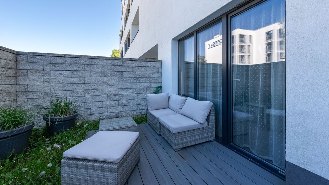Apartament znajduje się na parterze nowoczesnego budynku i oferuje gościom prywatny ogródek – idealny na relaks przy porannej kawie lub wieczorny odpoczynek po dniu pełnym wrażeń. W apartamencie znajduje się oddzielna sypialnia, co zapewnia wygodę zarówno dla par, jak i rodzin z dziećmi. Do dyspozycji gości jest również prywatne miejsce parkingowe w cenie pobytu.