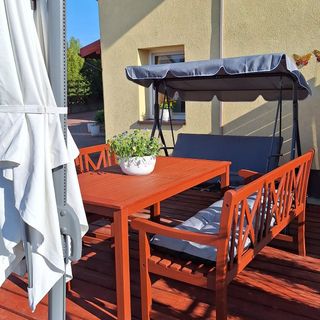 Na zewnątrz znajduje się miejsce do wypoczynku, gdzie goście mogą zrelaksować się na świeżym powietrzu.