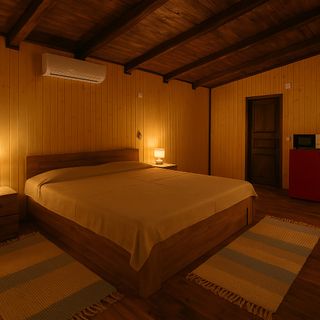 Niektóre pokoje w domku drewnianym posiadają taras lub balkon, gdzie możesz cieszyć się czasem na świeżym powietrzu. Dzięki klimatyzacji we wszystkich pokojach, możesz odpoczywać i być pewnym, że dotrzesz do chłodnego i przyjemnego pokoju nawet po wyczerpującym i długim dniu.