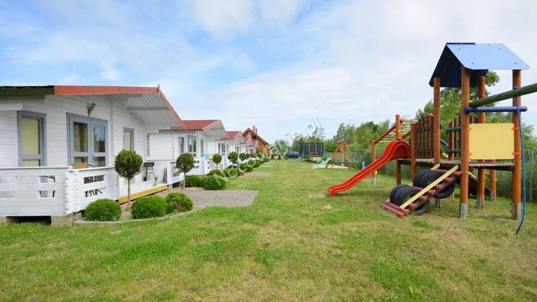 Domki parterowe składają się z: tarasu z meblami ogrodowymi, pokoju z aneksem kuchennym w pełni wyposażonym (płyta indukcyjna, czajnik, szklanki, talerze, garnki, sztućce itp.), stołu z 4 krzesłami, tv, WI-FI, rozkładany narożnik, grzejnik, łazienka, pokój dla dzieci, łóżko piętrowe 80x200, łóżko pojedyncze 80x200. W każdym domku jest pościel, parawan, mata plażowa, leżak. Teren obiektu ogrodzony i bezpieczny, na terenie plac zabaw dla dzieci, miejsce na grill, parking.