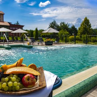 Na terenie hotelu działa restauracja serwująca dania kuchni węgierskiej i tradycyjnej, a także bar. W cenę pobytu wliczone jest śniadanie, z możliwością rozszerzenia wyżywienia o obiadokolacje.