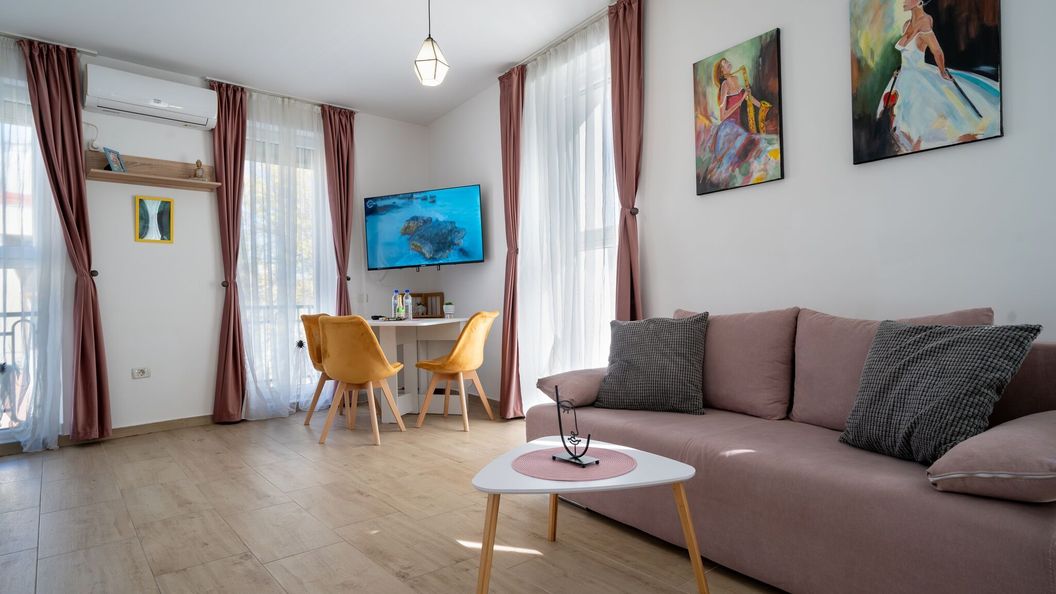 Niektóre pokoje w apartamencie posiadają balkon lub taras, gdzie możesz się cieszyć miłym wieczorem na świeżym powietrzu. Wszystkie pokoje wyposażone są w klimatyzację, zapewniającą optymalną temperaturę w pokoju podczas każdej pogody. W przypadku jeżeli zabierzesz laptopa ze sobą, możesz być online poprzez bezprzewodowy dostęp do Internetu (WiFi)dostępny w apartamencie. Osobna łazienka i toaleta znajdują się we wszystkich pokojach.