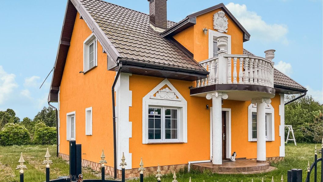 - Dom wykonany z drewna i cegły