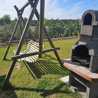 Do dyspozycji gości mamy: drewniane tarasy z kompletem mebli ogrodowych, 2 grille, drewniane huśtawki, leżaki, miejsce zabaw dla dzieci (huśtawki, piaskownica, zjeżdżalnia, domek zabaw).