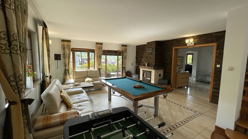 Obiekt składa się z 3 sypialni, wielkiego salonu wyposażonego w stół bilardowy, piłkarzyki i kominek, osobnej kuchni z jadalnią, strefy relaksu z siłownią oraz sauną. Każda sypialnia posiada balkon z widokami, a z salonu jest wyjście na taras wyposażony w meble ratanowe. W odległości 50m znajdują się kaskady na rzece Grajcarek z możliwością wejścia do rzeki i rozstawienia w niej leżaka :). Są one też wymarzonym miejscem do schłodzenia się w upalne dni po górskich wycieczkach lub zabawę dla dzieci. W obiekcie komfortowo może nocować do 10 osób.