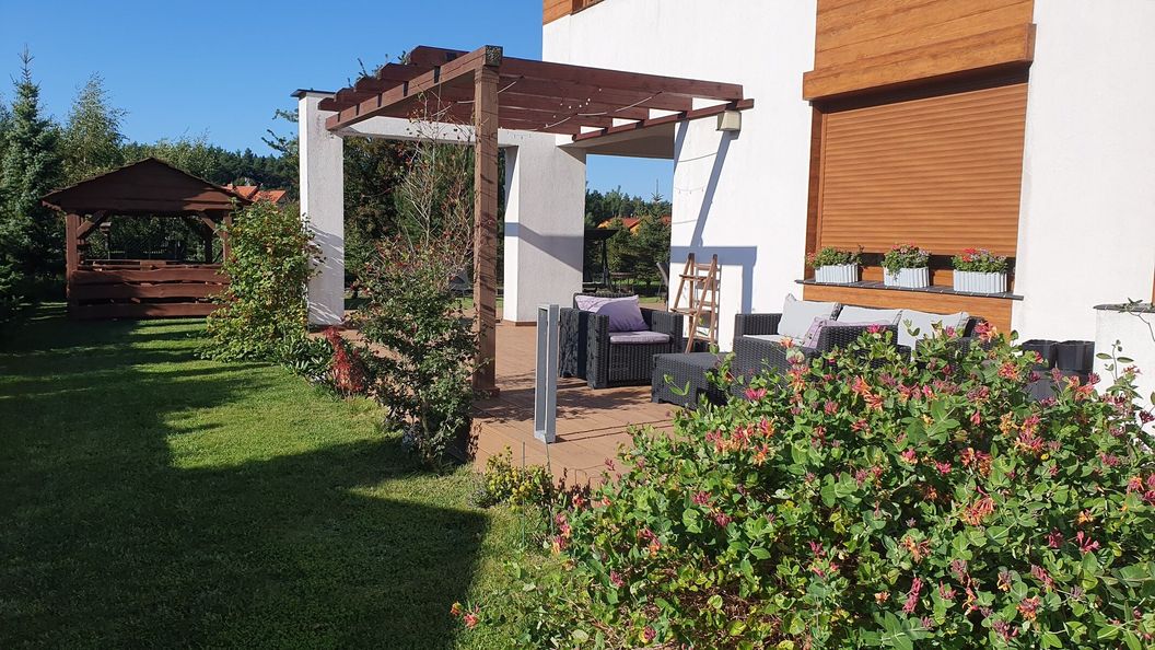 W pensjonacie dostępne są przestronne pokoje z łazienkami. Na piętrze pokoje z balkonami z widokiem na las oraz pokój z wyjściem na taras. Dla osób niepełnosprawnych lub starszych pokoje ze specjalnie przystosowanymi łazienkami na parterze. W łazienkach dla gości ręczniki, mydło w płynie, żel pod prysznic. W pokojach rtv, czajnik, do dyspozycji aneks kuchenny z wyposażeniem. Dla gości przygotowany jest sprzęt plażowy, rowery, grill. Obiekt posiada własny parking bezpłatny i zamykany. Opłaty można dokonać kartą płatniczą