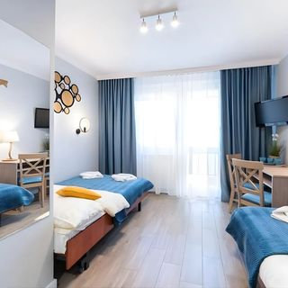 sierpień 2014Świetny dla rodzin z dziećmi: obiekt ogrodzony, bezpieczny, plac zabaw, uwielbiana przez dzieci trampolina, pokoik zabaw, organizowane zabawy. Bardzo blisko plaży. Pokoje ładne, czyste. Teren zadbany. Strzeżony parking. Posiłki smaczne, zdrowe.