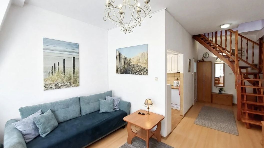 Dwupoziomowy apartament (50m2) dla 5 osób znajduje się w Villi Carmen na deptaku przy ul. Słowackiego w dzielnicy nadmorskiej.