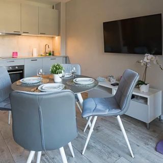 W apartamencie znajduje się aneks kuchenny przystosowany do zaspokajania codziennych potrzeb. Do dyspozycji Gości są sprzęty AGD m.in. lodówka, płyta indukcyjna oraz komplet naczyń, sztućce, akcesoria kuchenne, szklanki. Wszystko, co potrzebne by samodzielnie przygotować posiłki i cieszyć się wspólnymi chwilami z bliskimi.