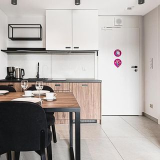 W apartamencie znajduje się doskonale wyposażony aneks kuchenny przystosowany do zaspokajania codziennych potrzeb. Do dyspozycji naszych Gości udostępniamy sprzęt AGD m.in. lodówkę, płytę grzewczą oraz komplet naczyń, sztućce, akcesoria kuchenne, szklanki i kieliszki do wina. Wszystko, co potrzebne by samodzielnie przygotować posiłki i cieszyć się wspólnymi chwilami z bliskimi.