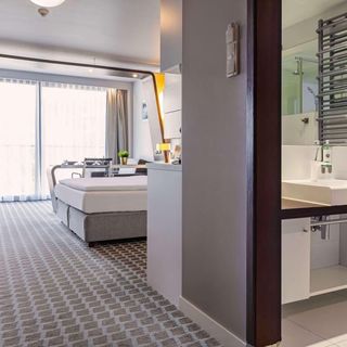 Marine Hotel Apartament 437 to komfortowy apartament dla 4 oósb. Hotel położony jest w sąsiedztwie Ekoparku oraz zacienionej trasy rowerowej do Portu Morskiego lub w przeciwnym kierunku do Podczela z niesamowitymi widokami na wydmy. Dogodna lokalizacja budynku zapewnia dobry dojazd zarówno do dworca kolejowego, jak i autobusowego.