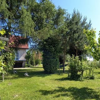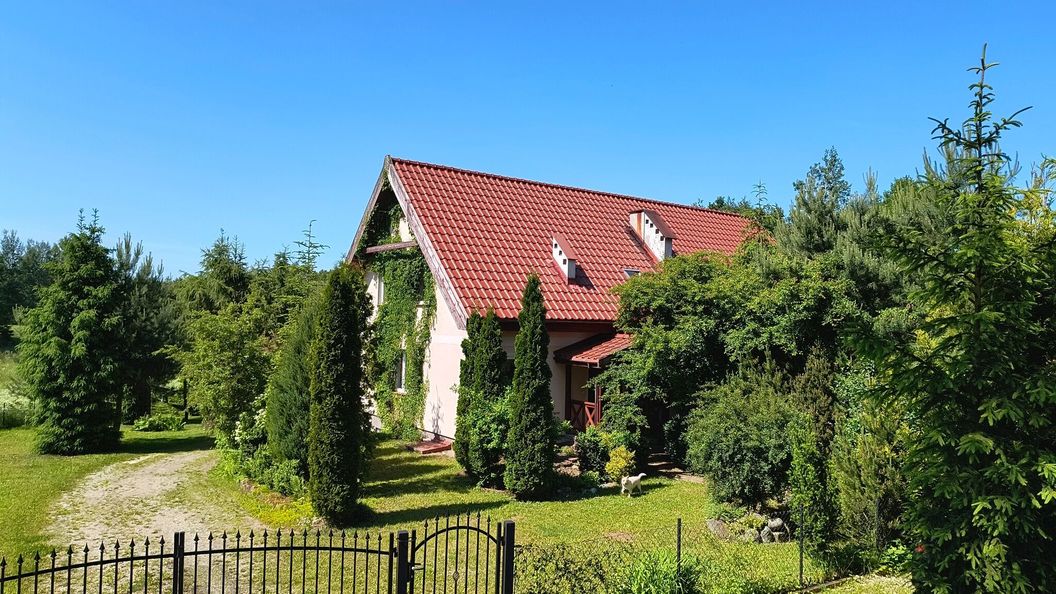 Dom znajduje się na przestronnej, ogrodzonej działce z dużym ogrodem, idealnym do relaksu lub grillowania i wypoczynku ze zwierzętami. W okolicy znajdują się jeziora, w odległości ok. 4 km.